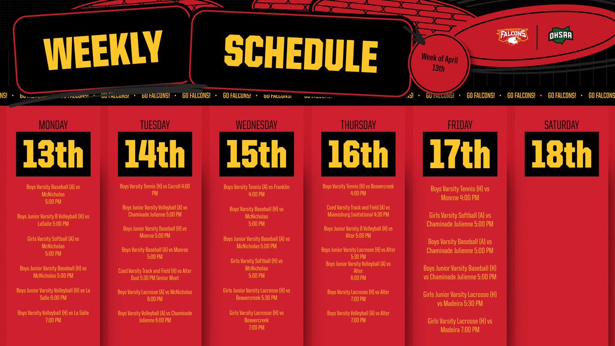 | Coed Varsity Track and Field (A) vs Miamisburg Invitational | 4:30 PM | View Details |