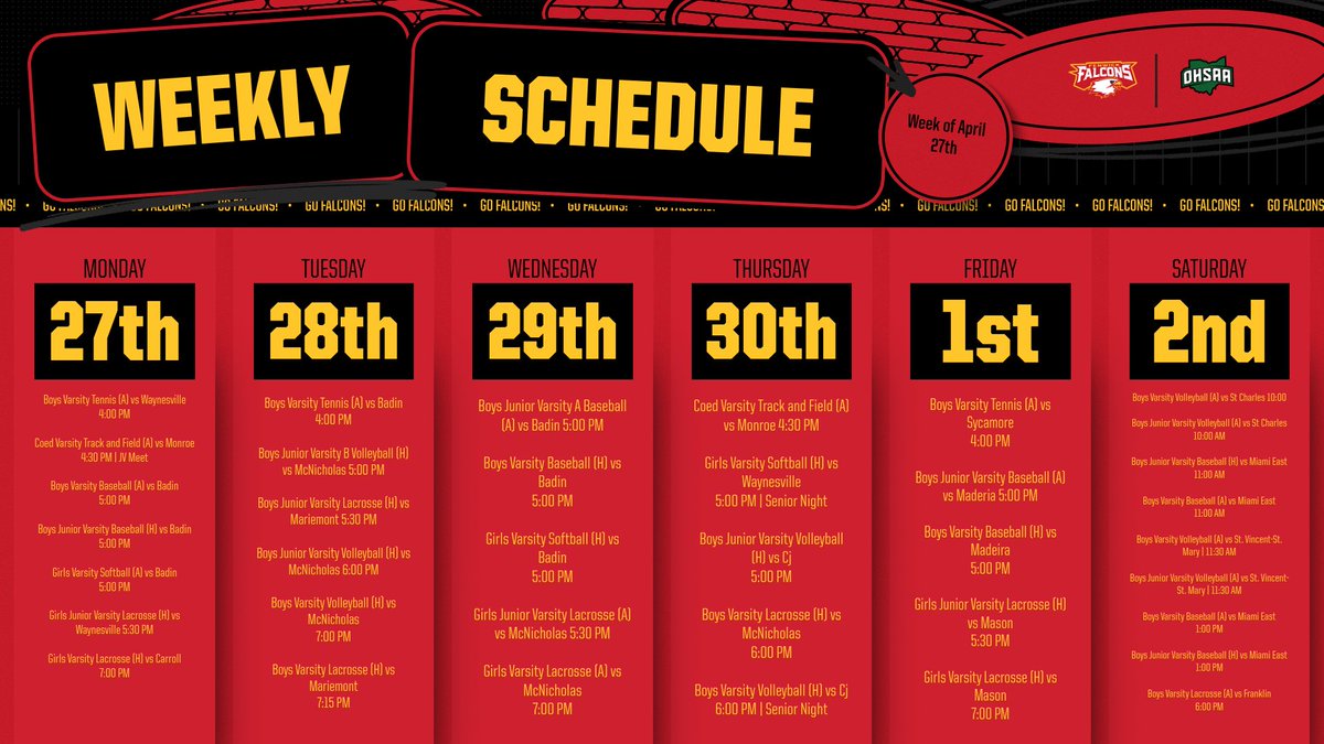| Boys Varsity Baseball (H) vs Madeira | 5:00 PM | View Details |